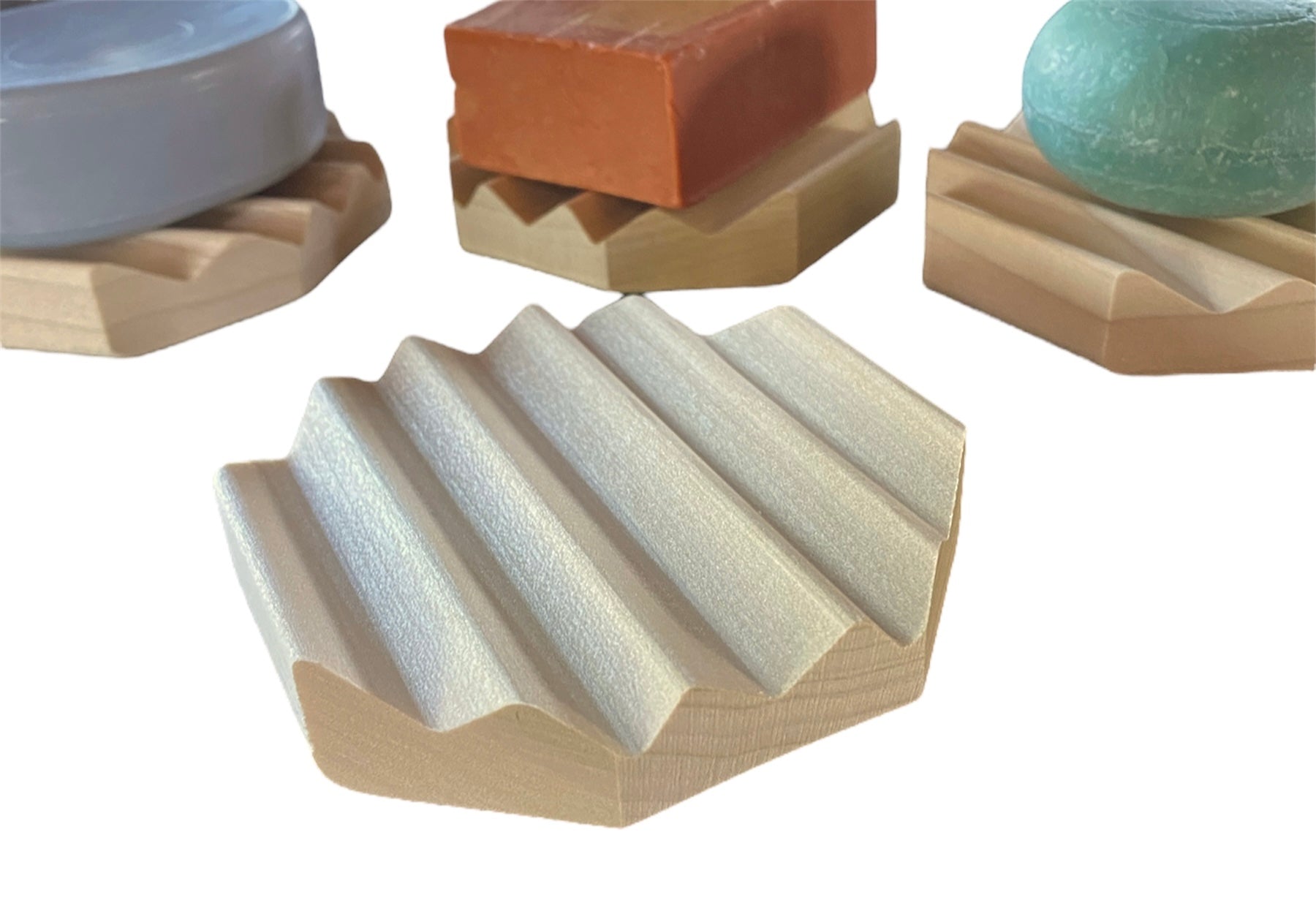 This soap dish has minimal surface area to minimize the sticking of the soap, with wide angled channels that allow the water to quickly drain. This not only allows your soap to dry quicker and extending life to the soap, but it also extends the life of the soap dish!